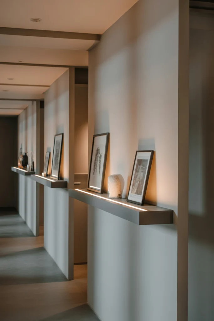 Easily rotate framed pieces or decorative objects for variety. Ledges also help create layered visual interest along narrow walls.