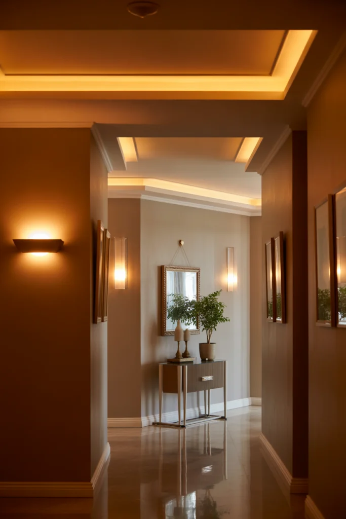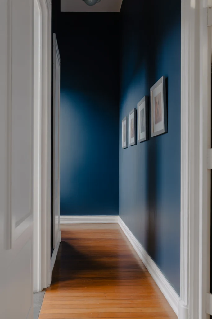 A darker or vibrant hue adds depth, contrast, and interest to the hallway. Pair with neutral furniture and soft lighting to maintain balance.
