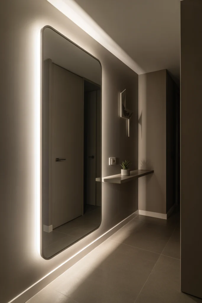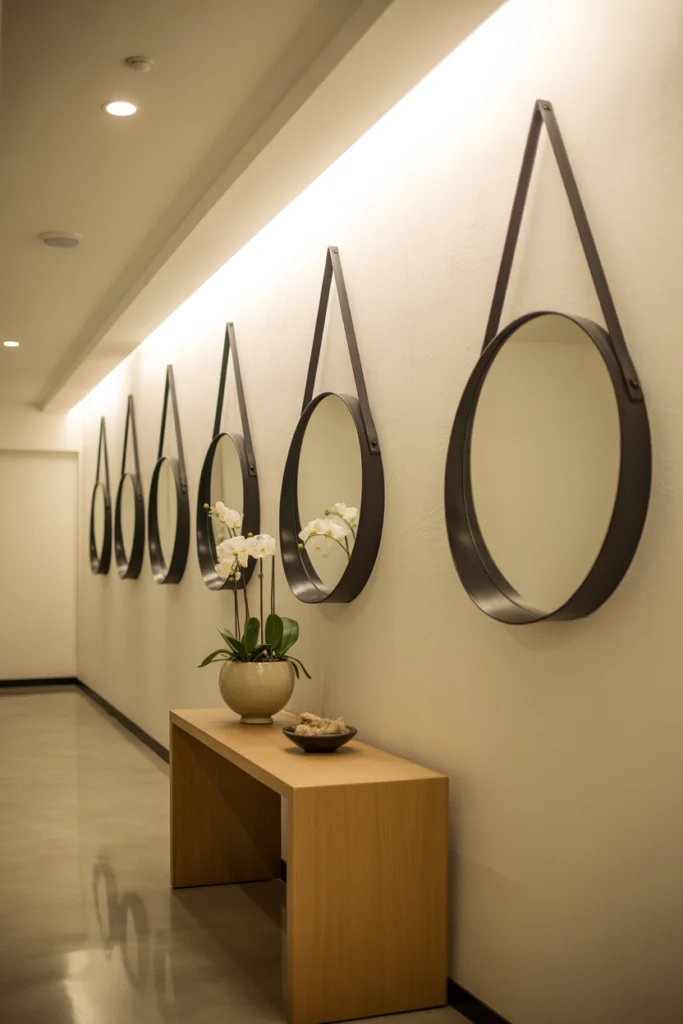 Mirrors create the illusion of more space and reflect light, brightening narrow hallways.