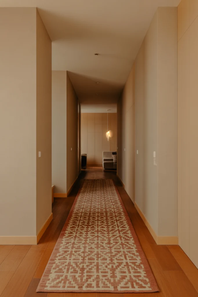 Add a long runner rug to soften footsteps, add warmth, and introduce color or pattern.