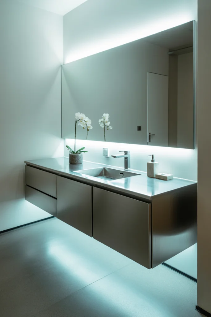 Metal cabinets pair well with stone, concrete, or glass countertops, adding an urban touch. If you’re seeking Vanity Cabinet Ideas with durability and style, metal designs offer a unique and modern option.