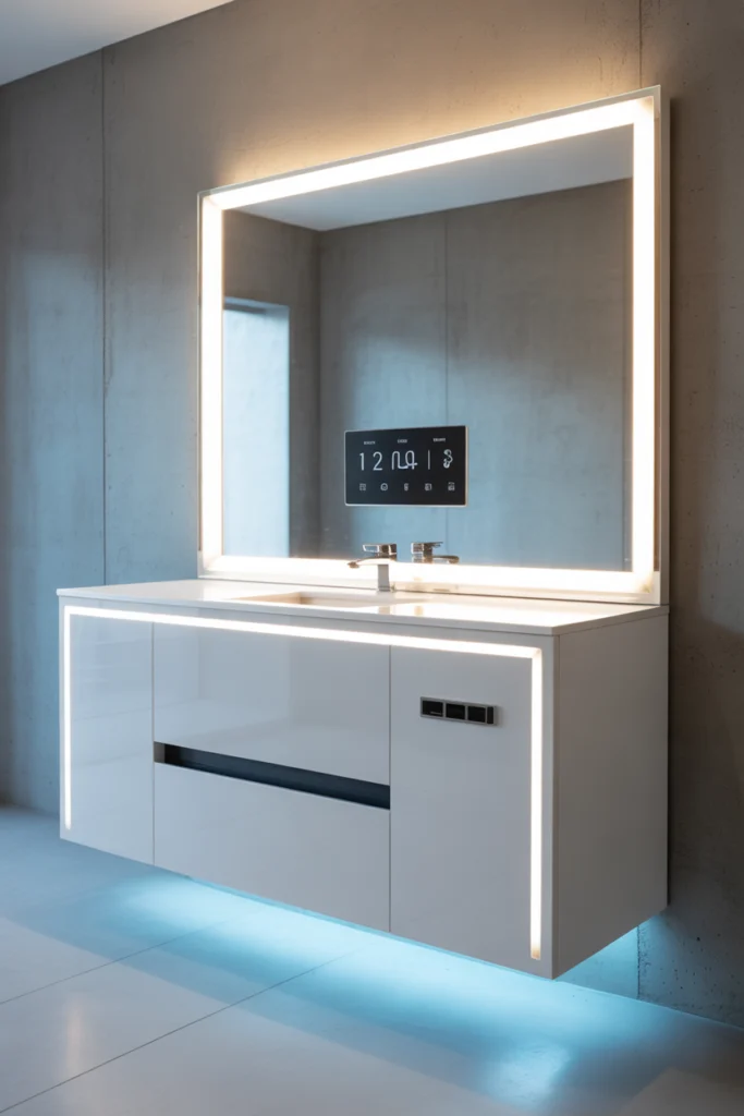 22. Smart Vanity Cabinets with Tech Features