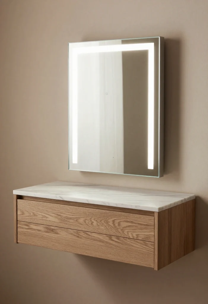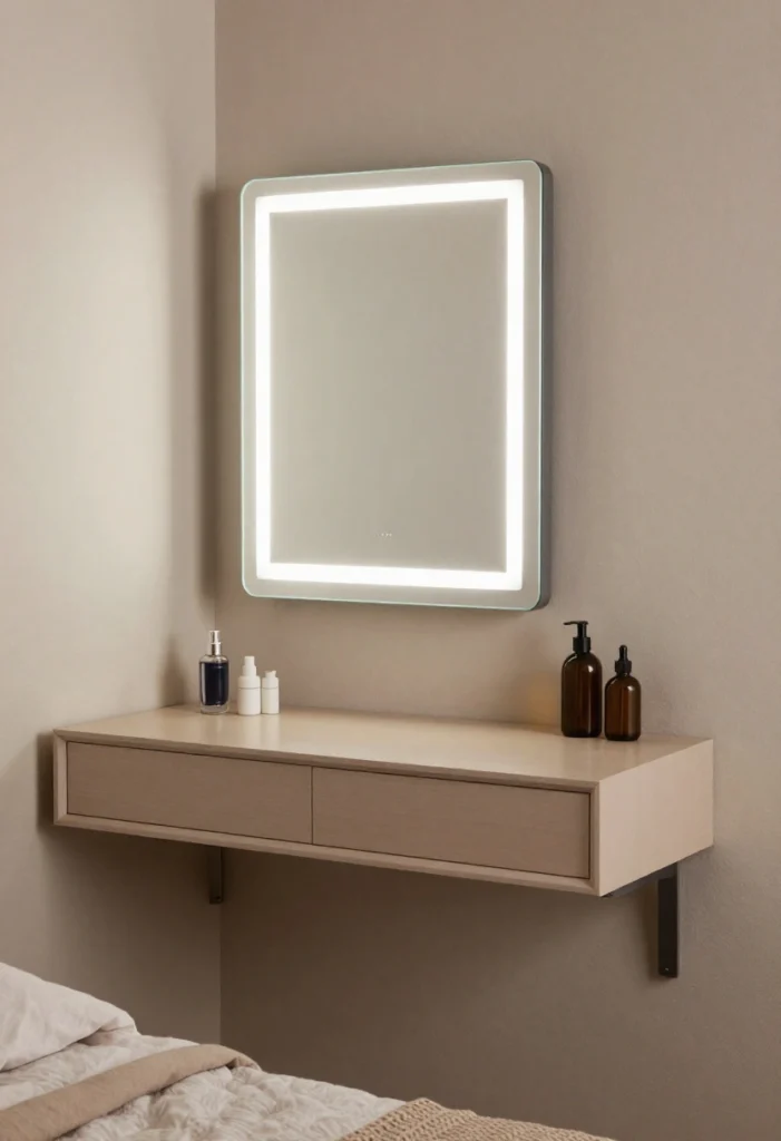 Floating vanity tables are excellent vanity table ideas for compact rooms and apartments. Mounted directly to the wall, they free up floor space and create a clean, open appearance. This design helps make small rooms feel larger while maintaining full functionality. Floating vanities are especially popular in modern and minimalist interiors.
