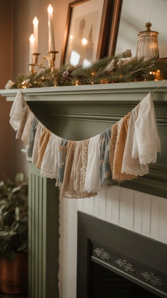 Use strips of old fabric or lace to make a soft, flowing garland. Tie them onto twine or ribbon for a romantic, shabby-chic look.