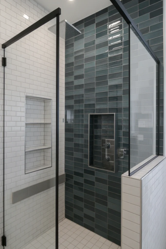 An accent wall introduces color, texture, or pattern that defines the shower area. Whether using bold tiles, mosaic patterns, or textured surfaces, accent walls create a striking focal point.
