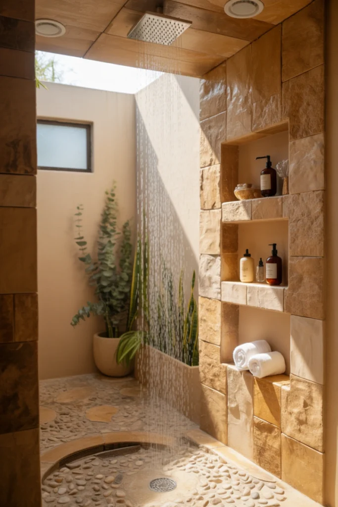 8. Walk-In Shower with Natural Stone
