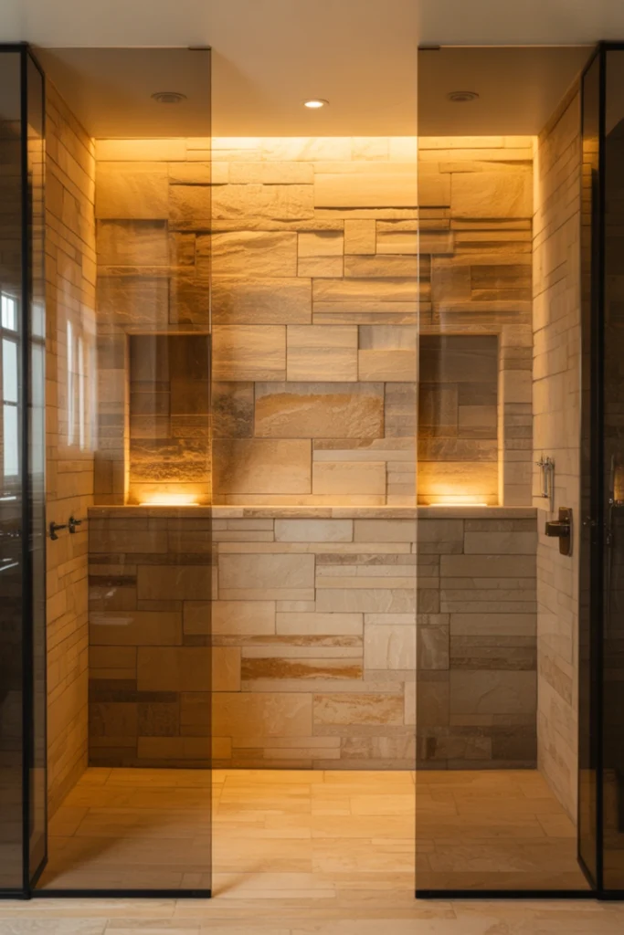 Balanced textures enhance comfort and safety. Among walk-in shower ideas, textured designs combine form and function.