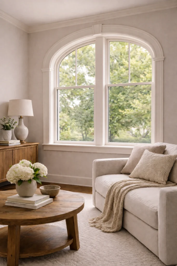 Arched trim softens a room and creates a sense of grandeur. It works especially well in entryways and living areas. This design choice draws attention to craftsmanship and architectural beauty, making windows feel like focal points.