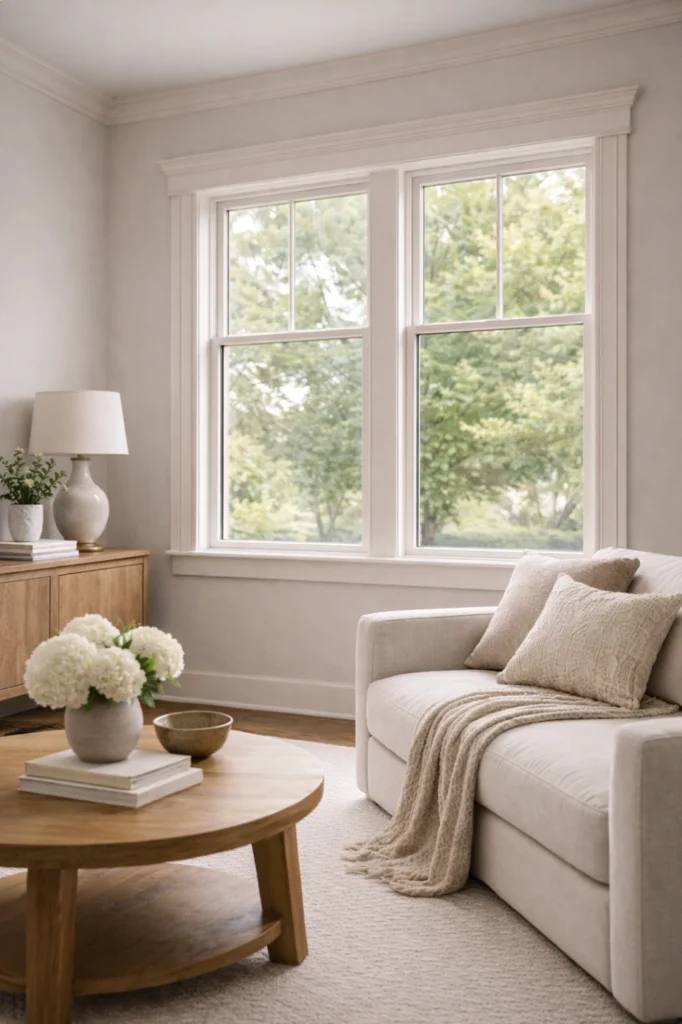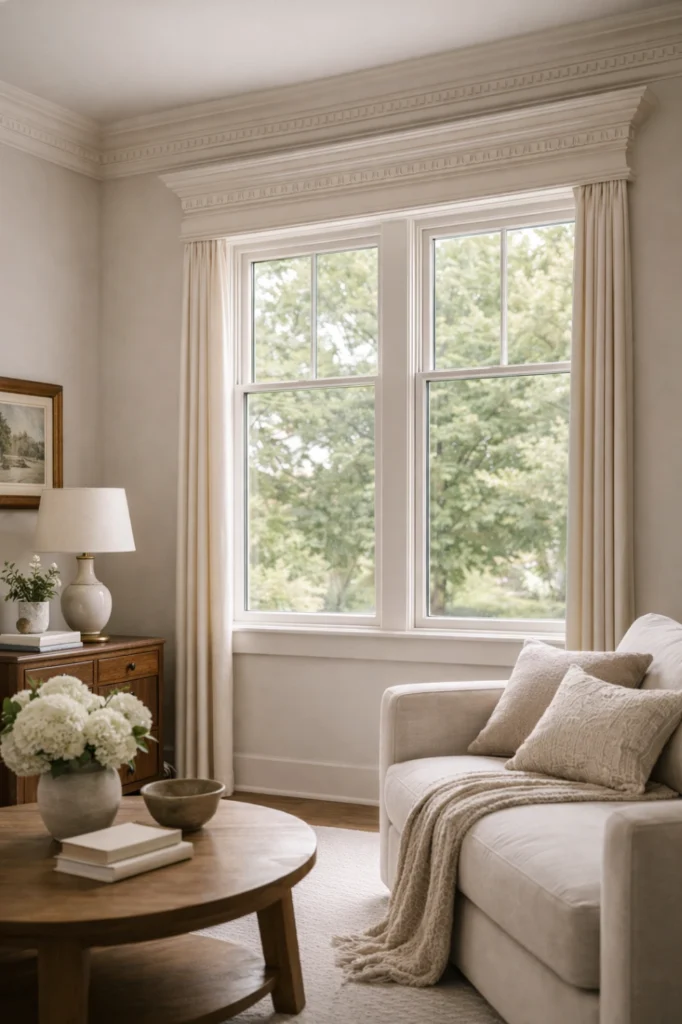 Neutral-colored trim blends gently with wall colors while still defining the window frame. It creates a cohesive look that feels intentional without drawing too much attention. This option is perfect for homeowners who want understated elegance and flexibility in décor. Soft neutral trim complements a wide range of interior styles.