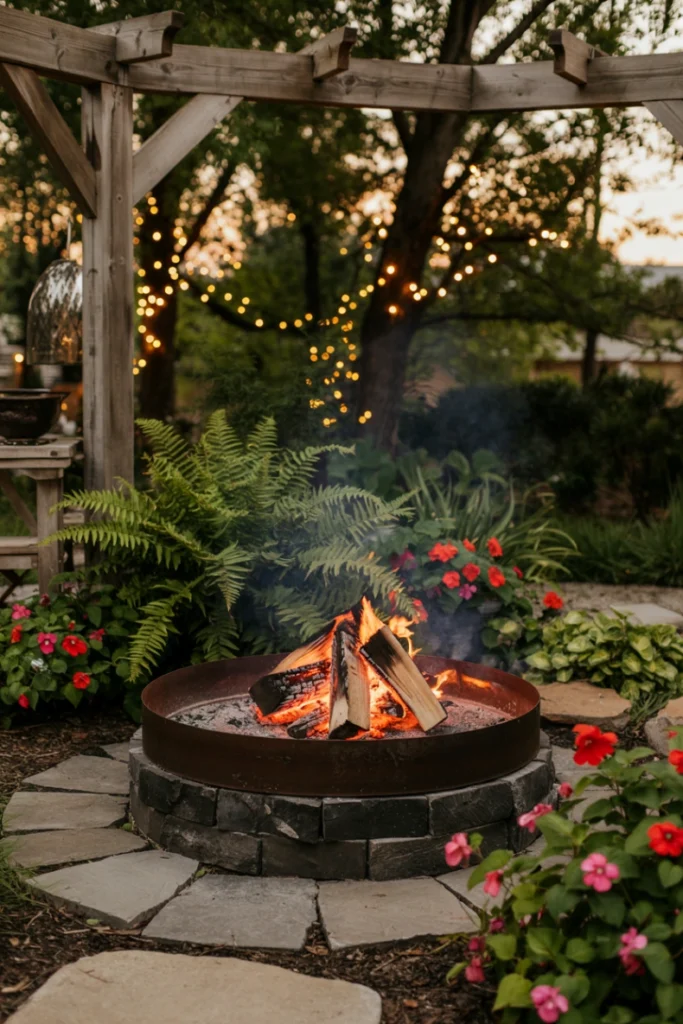 Integrating the fire pit with landscaping creates a natural flow. This yard fire pit idea uses plants, stone paths, or garden beds to frame the fire pit.