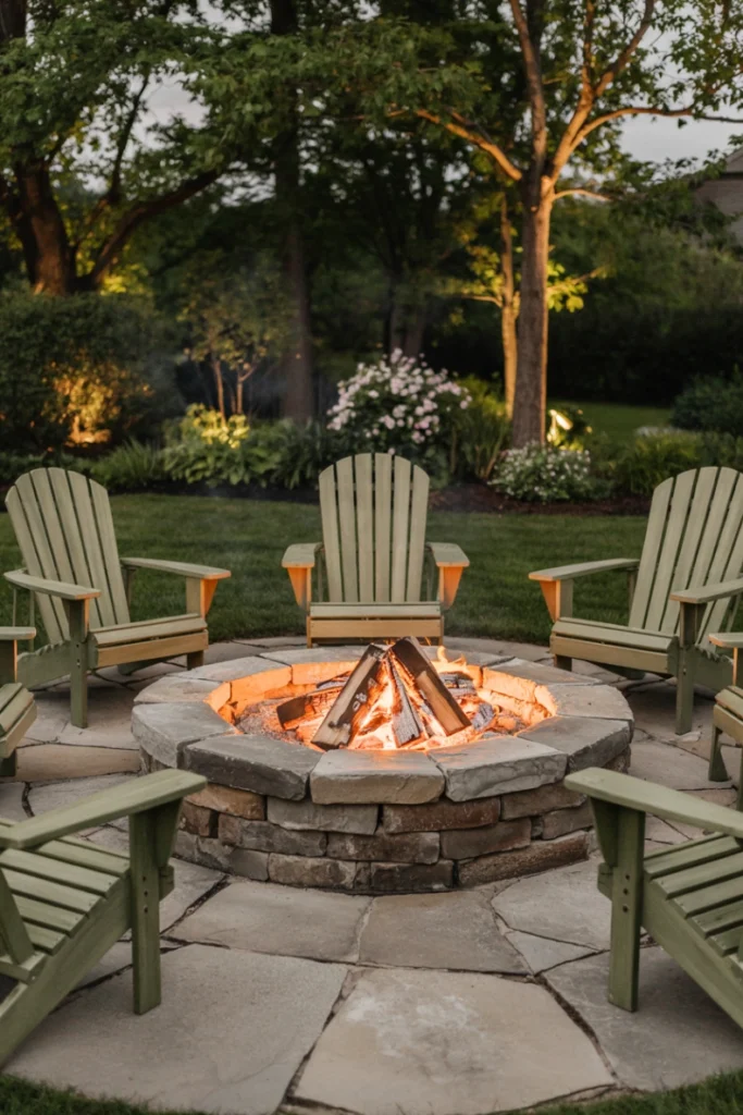 From a layout perspective, circular designs feel natural and inviting. They maximize seating capacity while maintaining clear sightlines to the fire. This setup works well for both casual gatherings and formal outdoor entertaining.